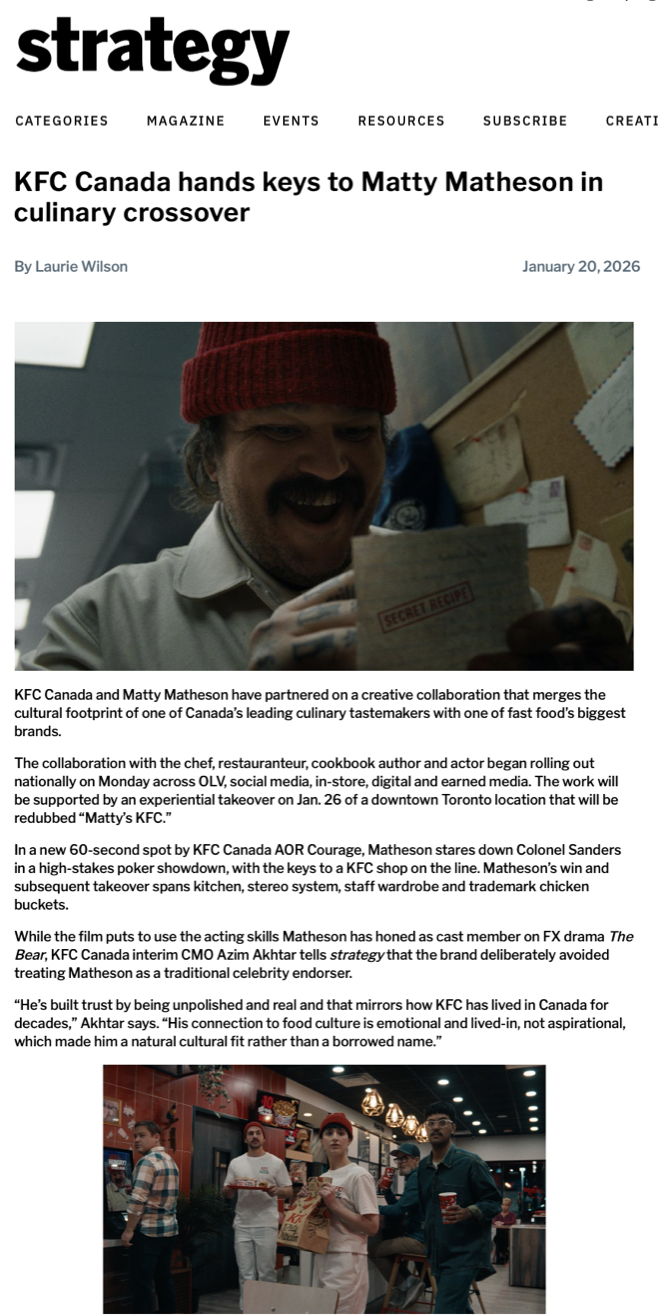Feature: “KFC Canada hands keys to Matty Matheson in culinary crossover”